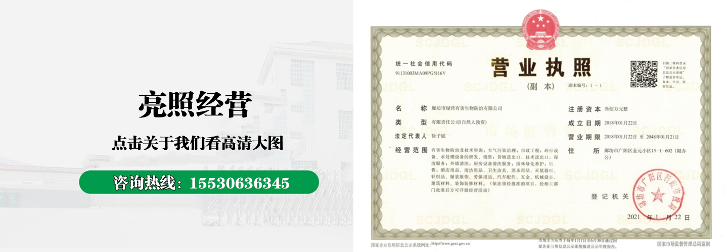 廊坊市綠營有害生物防治有限公司主要從事有害生物防治及環(huán)境消毒服務(wù),專注于白蟻預(yù)防工程、滅白蟻、滅老鼠、滅蟑螂、滅蚊蠅、滅跳蚤、滅臭蟲、滅紅火蟻、滅塵螨、消毒滅菌、家居清潔等有害生物的預(yù)防和治理服務(wù)。本公司面向,公共場所、商務(wù)樓、商場、超市、公園、工廠、酒店、餐廳、浴場、私人住宅等各類環(huán)境,公司一直堅持以健康環(huán)保為前提,讓我們多一份健康”為宗旨,結(jié)合安全、、無反彈、對人畜安全無害,解決您的后顧之憂,與您共同打造一個無害、潔凈、舒適、健康的生活環(huán)境。...